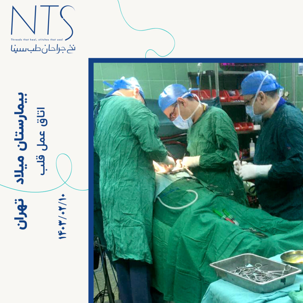 پی نوشت : حضور تیم علمی شرکت نخ جراحان طب سینا در اتاق عمل قلب بیمارستان میلاد تهران (بزرگترین بیمارستان تأمین اجتماعی کشور) جهت تست و ارزیابی نخهای تخصصی پرولن که در عملهای حساس گروه قلب و عروق کاربرد وسیعی داشته و کشور به واسطه تحریمها در تامین این گروه از کالاها با مشکلات جدی مواجه است، نخهای تخصصی قلب و عروق برای اولین بار در ایران توسط مجموعه دانشبنیان نخ جراحان طب سینا در کشور طراحی ، تولید و به بازار عرضه شده است